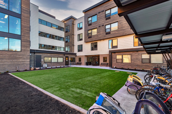 New Path is located very close to the downtown Boise core. With access to transportation, supportive services, and community amenities, it provides 40 units of permanent housing for the most vulnerable populations, including the chronically homeless. This project includes a community room with a kitchen, on-site management, case management offices for the supportive services, an exercise room, a bicycle repair kiosk, and dog park.